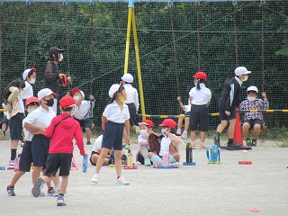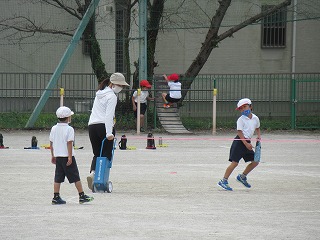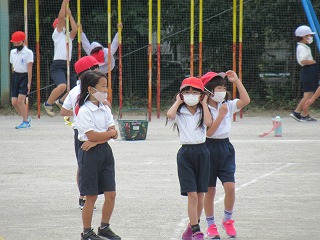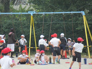 休み時間のようすです。みんな楽しそうに運動場をかけめぐっています。