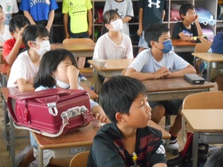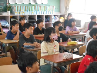6年生が、修学旅行で学んだことを発表していました。みんな来年に向けて、興味津々です。