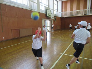 6年2組は体育の時間でした。昨年度も行ったバレーボールの単元を行っていました。まだまだラリーが続かないようでしたが、これから練習をして上達してほしいと思います。