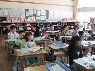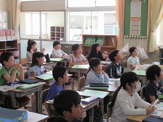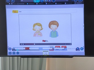 3年1組は外国語活動の時間でした。モニターに流れる英語のあいさつの歌をみんなで振りを付けながら歌っていました。みんな大きな声で発声できていました。