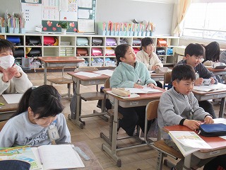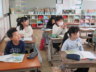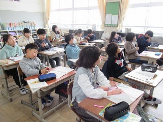 3年2組では、算数の時間、大型モニターを活用しながら、学習を進めていました。