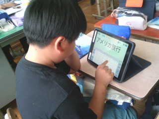 「修飾語」について学ぶ授業でした。写真を見て、それを表す文を修飾語を使って作りました。