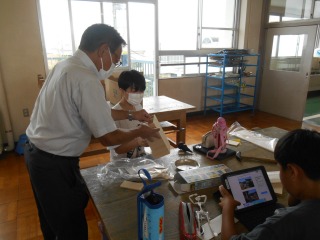 人の模型を使って、10年後の自分の様子を表現します。どんな作品ができるでしょうか。
