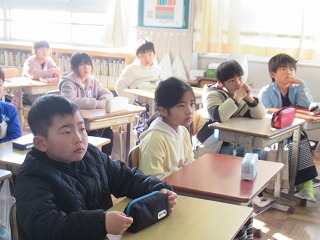 2年1組では、朝の会の時間、しっかりと先生の話を聞いていました。