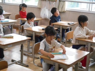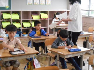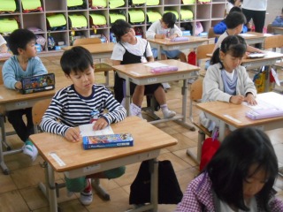 教科書にある文を、移す練習をするところでした。漢字とひらがなを書く練習です。