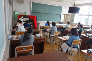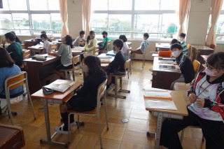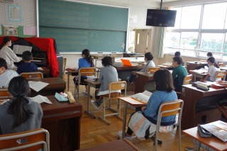 4年1組の音楽は、「もみじ」の合唱練習でした。低い旋律の練習にみんなで挑戦しました。