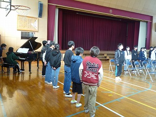 美和小では、19日の卒業式に向けて、5・6年生が合同で練習を行いました。