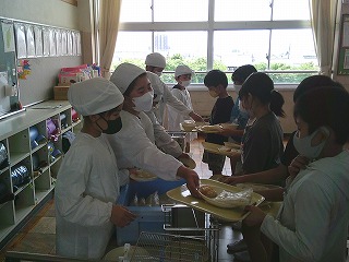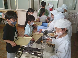 今日も各学年・各教室で、給食当番さんが頑張ってくれていました。これから、暑くなるので、体力をつけて乗り切れるように、たくさん食べてもらいたいです。