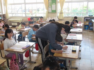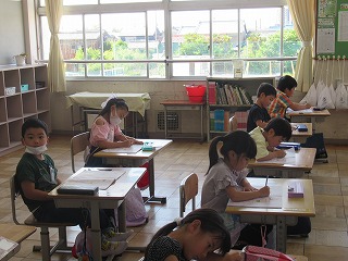 1年2組は、ひらがなの書き取りを行っていました。