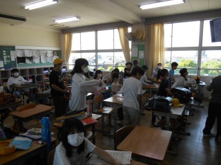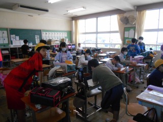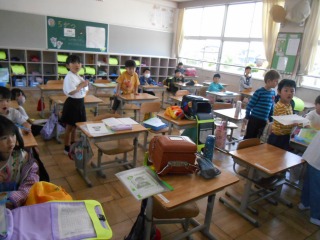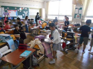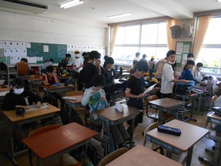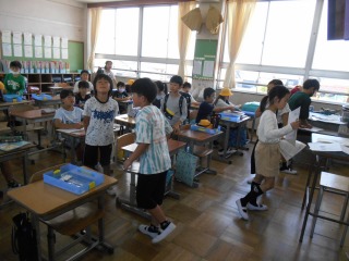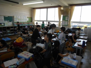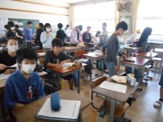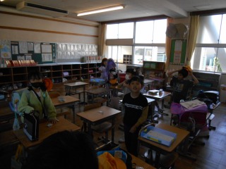 仲良くお話をしながら準備をしていました。今日は中学年と支援学級の読み聞かせがあります。