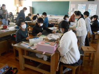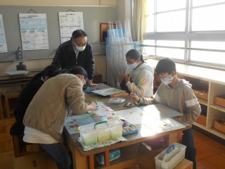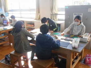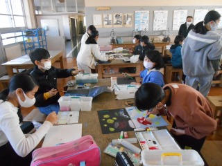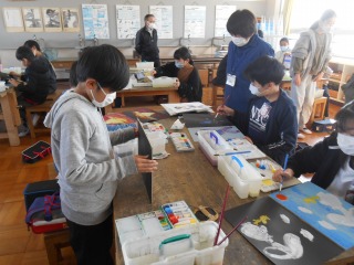 版画への色塗りをしていました。さすが高学年、きれいな色使いでした。