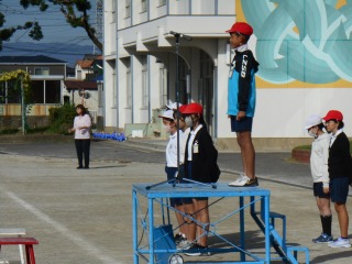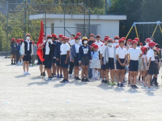 1時間目は、全校で開会式と閉会式の練習をしました。入退場の仕方や、代表児童が前に立つタイミングなどを確認しました。