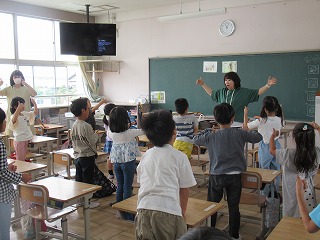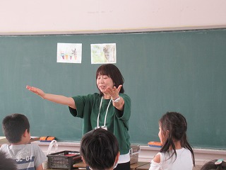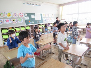 1年1組では、本日、VATの先生に来ていただき、外国語活動を行っていただきました。みんな楽しそうに英語に慣れ親しんでいました。