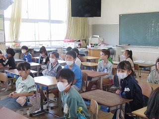 3年1組では、背面黒板を使い、1日のスケジュールを確認していました。