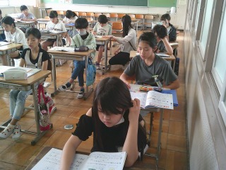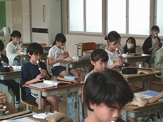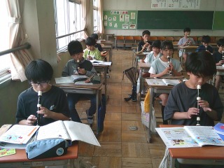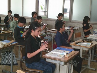 「茶色の小びん」の楽譜を見ながら、まずは音階で歌い、その後リコーダーで演奏していました。「上手だね!」と先生からも声が上がるほどでした。