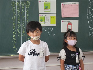 日直や保健係さんなど、前に出て会の進行をしています。立派ですね。