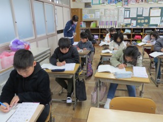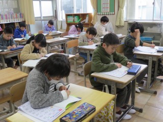 分からない数を四角として考える問題に取り組んでいました。3年生最後ともなると、少し抽象的な考え方が必要になってきます。