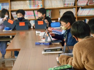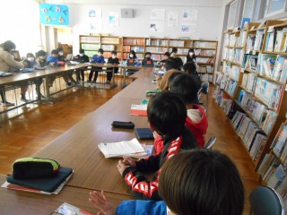 図書室を覗くと、4年2組の子達が社会で学習した愛知の伝統文化について調べ、まとめる資料を探しに来ていました。