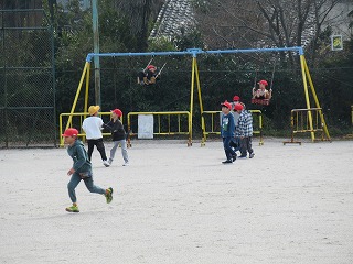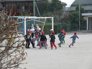 休み時間の運動場の様子です。子どもたちは、元気いっぱい遊んでいます。