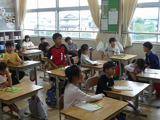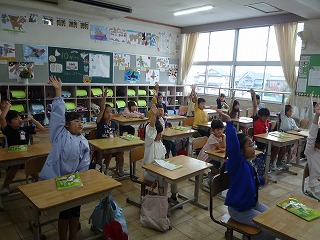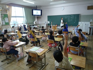 先生がかいた絵を見て、どんな漢字につながるのか考えました。