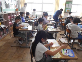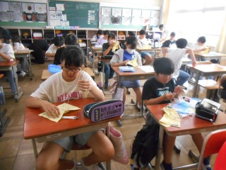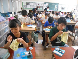 玉結び、玉留め、なみぬいを練習していました。2枚のきれを正確に合わせ、縫うことに苦労をしていました。