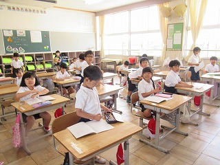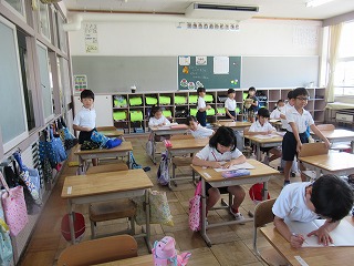 今日は、1年生が体力テストを行います。朝から着がえです。がんばってくださいね。