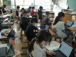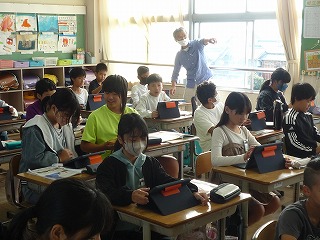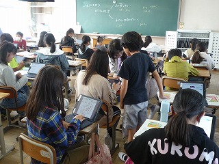 「旬」と「地域」をキーワードとしたオリジナルのみそ汁をタブレットを活用して調べました。