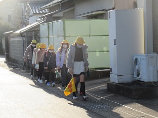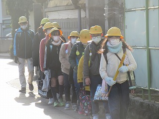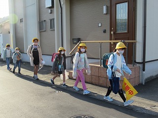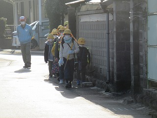 東門の通学班の登校の様子です。