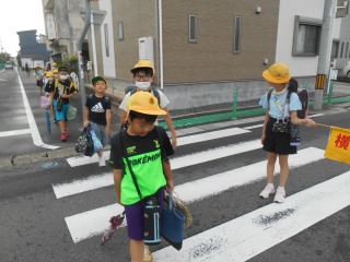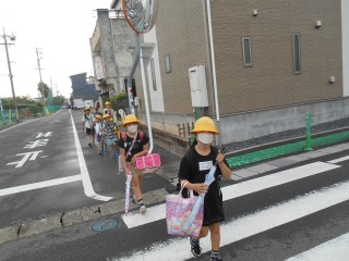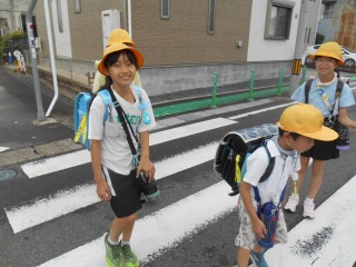 元気に登校してきました。大きな道路ですが、車が止まってくれています。ありがとうございます。