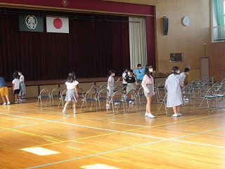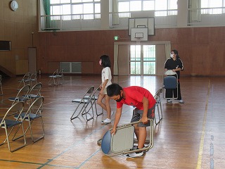 本日は、就学時健診が行われます。そのために、5年生の子どもたちが、体育館にいすを並べてくれました。みんな意欲的に働いてくれていました。さすがですね。