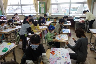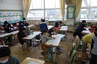 2年1組の生活科は、自分たちで作ったすごろくを、となりの席の友達と楽しみました。