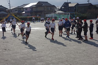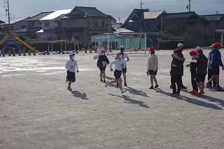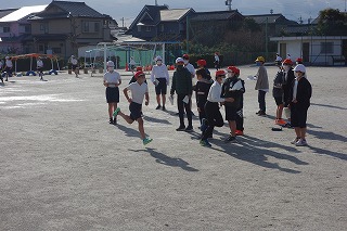 6年2組の体育は持久走でした。一周ごとにタイムを確認しながら走りました。