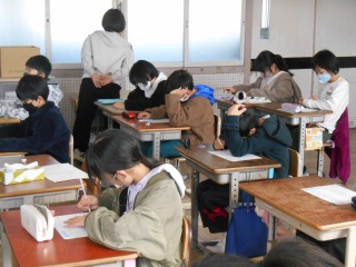 プリントを使って、小テストを行っていました。