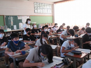 6年1組では、算数の授業が行われていました。拡大と縮小についてです。難しい学習内容です。しっかり理解してくださいね。