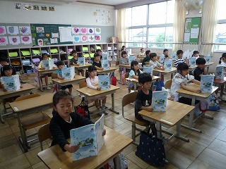 姿勢はバッチリ!リズムよく大きな声で読めました!