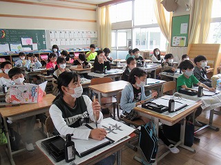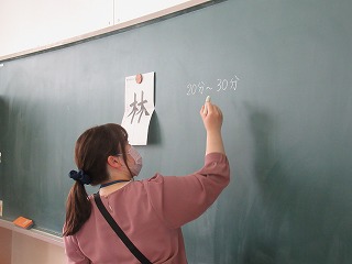 4年1組では、書写の授業が行われていました。「林」という文字を練習します。