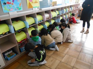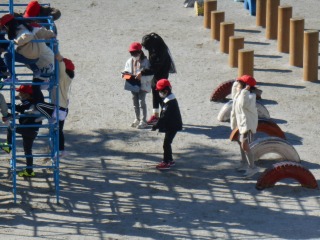 新1年生に、学校生活を紹介する動画を撮影していました。ロッカーの使い方、掃除、遊具の使い方などなど、さまざまな場面を紹介していました。