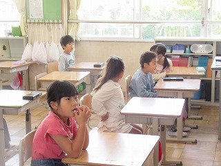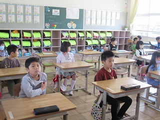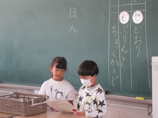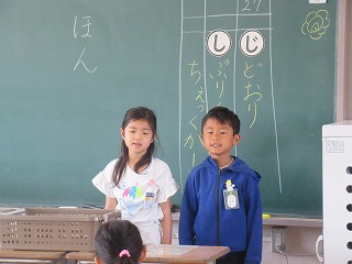 1年1組が朝の会を行っていました。日直さんや保健係さんがしっかりと号令をかけていました。