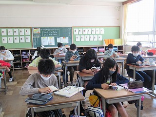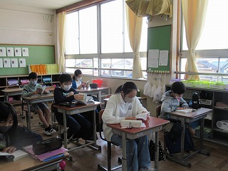 6年1組が、朝読書の時間、集中して本を読んでいました。