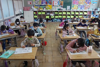 1年1組の算数は、復習プリントに取り組みました。