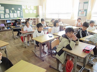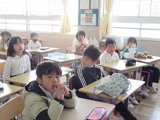 2年1組では、朝の会で、この教室で過ごすのもあと5日だよ、と先生が伝えると、えーいやだという声が聞こえてきました。次の学年に向けて、よいしめくくりができるといいですね。