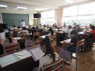 3年2組は、音楽室で音楽の授業を行っていました。みんな先生の話をしっかり聞いて、授業を受けていました。