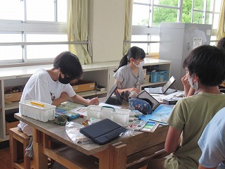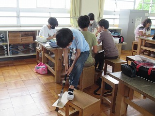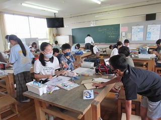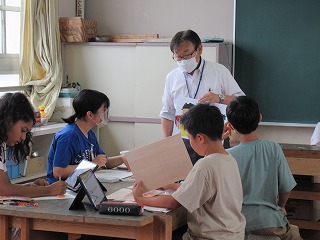 6年2組では、図画工作が行われていました。のこぎりを使い、板を切っている子もいました。どんな作品が仕上がるのか、楽しみです。