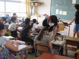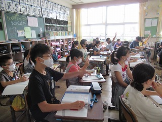 5年2組では、算数の授業が行われていました。難しい問題にも粘りつよく取り組むことが大切です。みんながんばっていました。