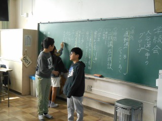 大谷選手のグローブを全校児童でどう使うとよいか、話し合っていました。