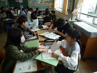 品物が生産された国の名前や場所を英語で紹介し合いました。