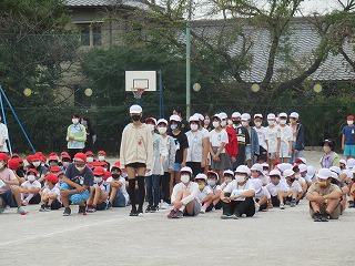 今日、ミワリンピックに向けての全校練習を初めて行いました。みんなしっかり取り組んでいて、すばらしかったです。本番に向けてがんばってください。