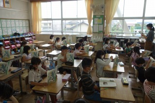2年2組の国語は、『どうぶつ園のじゅうい』の学習でした。班ごとに、音読をしました。