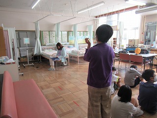 6年1組が、保健室で視力検査を行っていました。