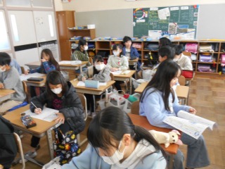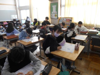慣用句のプリントにチャレンジしていました。難しい言葉がいっぱいで、頭を悩ませながら取り組んでいました。